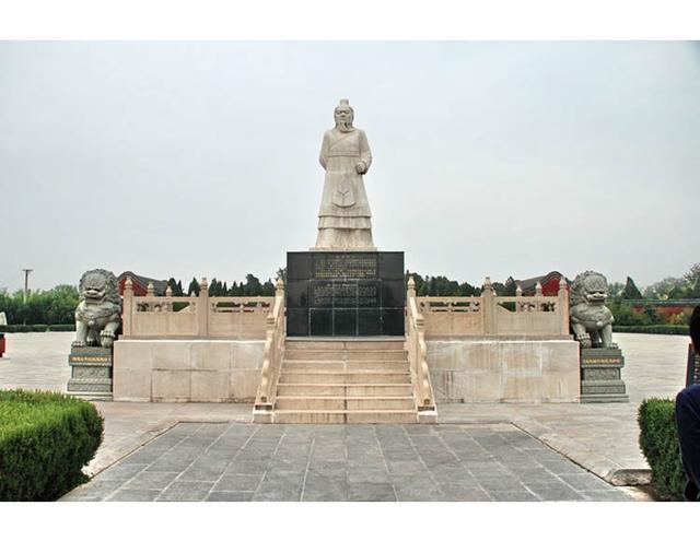 神道正北的台座上又是一座比干雕像,是由泰国清英俊公司林炳南先生捐建的。您看他目光深邃,气宇轩昂,愤世嫉俗,体现忧国忧民的神情,令人不禁肃然起敬。像高四米,以汉白玉质,寓意比干出污泥而不染,处逆境而不屈,犯颜直谏,取义成仁的壮举永垂不朽。