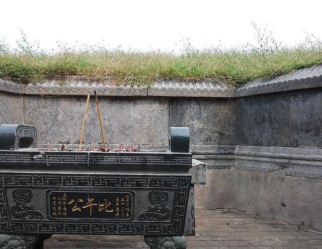 这座高大的土丘就是比干陵寝,比干死后武王为其封墓,为中国有史记载第一座坟丘式墓葬。古代墓而不坟,中原地区出现坟丘式墓葬,始于春秋晚期。比干墓原为一抔黄土,占地五亩之大,前来观赏凭吊的人可直接走上墓顶。
