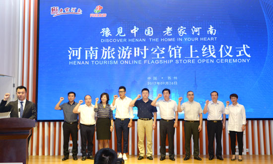 大公网讯9月26日,“河南旅游时空馆”在苏州由河南省旅游局局长寇武江,同程旅游创始人、同程国旅CEO吴剑共同启动。郑州、开封、洛阳、平顶山、安阳、鹤壁、新乡、濮阳、漯河、三门峡、南阳、信阳、驻马店、济源旅游局(委)负责人共同见证了“河南旅游时空馆”的启动。河南省旅游局又一新媒体平台正式上线,这也是河南重点打造的旅游目的地营销新平台。