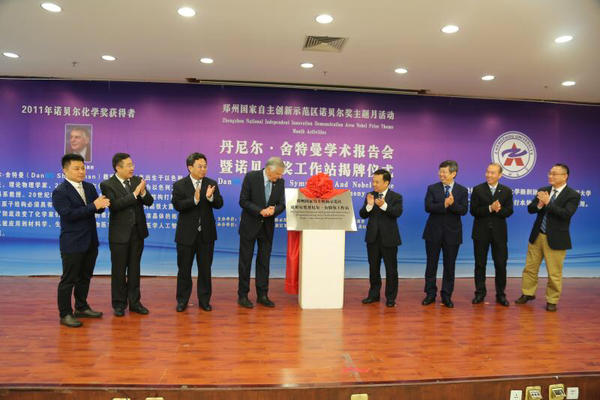 10月11日,河南省首个诺贝尔奖工作站——2011年诺贝尔化学奖得主丹·谢赫特曼(Dan Shechtman)工作站在郑州大学正式挂牌,这标志着河南省第一个诺贝尔奖得主领衔的科研团队正式入驻郑州高新区。
