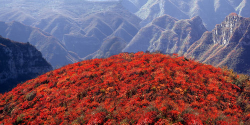 10月15日上午,“青天河 中国红”2017焦作太行红叶节开幕式暨青天河全国摄影大赛启动仪式在博爱青天河靳家岭举行,来自全国各地的游客和摄影爱好者云集此地,欣赏和拍摄漫山红遍、层林尽染的红叶。