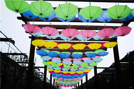 花世界将葡萄牙小镇阿圭达(Agueda)的“雨伞天空”搬到了景区美食街,彩色雨伞犹如“被施了魔法”,悬空在美食街上空,犹如一道彩虹横跨天际,仿佛置身《爱丽丝梦游仙境》的梦幻世界。美食配美景,给你赏心悦目的就餐新体验。