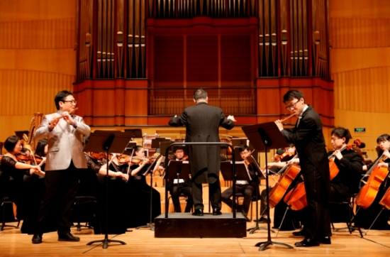 大公网讯 10月13日晚,河南交响乐团音乐季系列之“韩国良——笛之舞”在河南艺术中心音乐厅奏响。中央音乐学院博士生导师、中国国家交响乐团长笛首席韩国良与著名指挥家邵恩,携河南省交响乐团,一起为乐迷献上了一场精彩美妙的音乐盛宴。