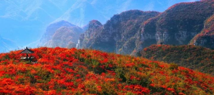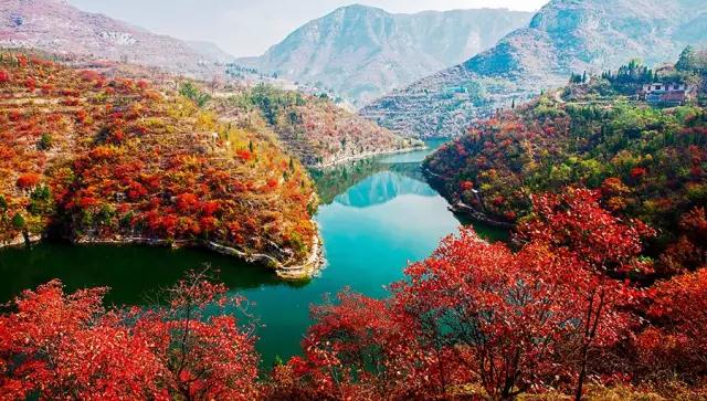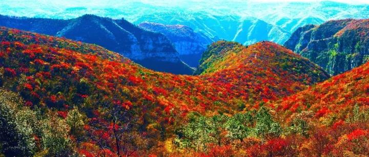 青天河景区拥有浑然天成的自然风光、深邃厚重的文化底蕴、独特富饶的生态环境,特别是绚若晚霞、气势磅礴的数万亩“红叶海”独领风骚,世人无不惊叹震撼!“北国秋游绝佳处,碧水红叶青天河”,秋天到青天河景区观赏红叶,就对了!