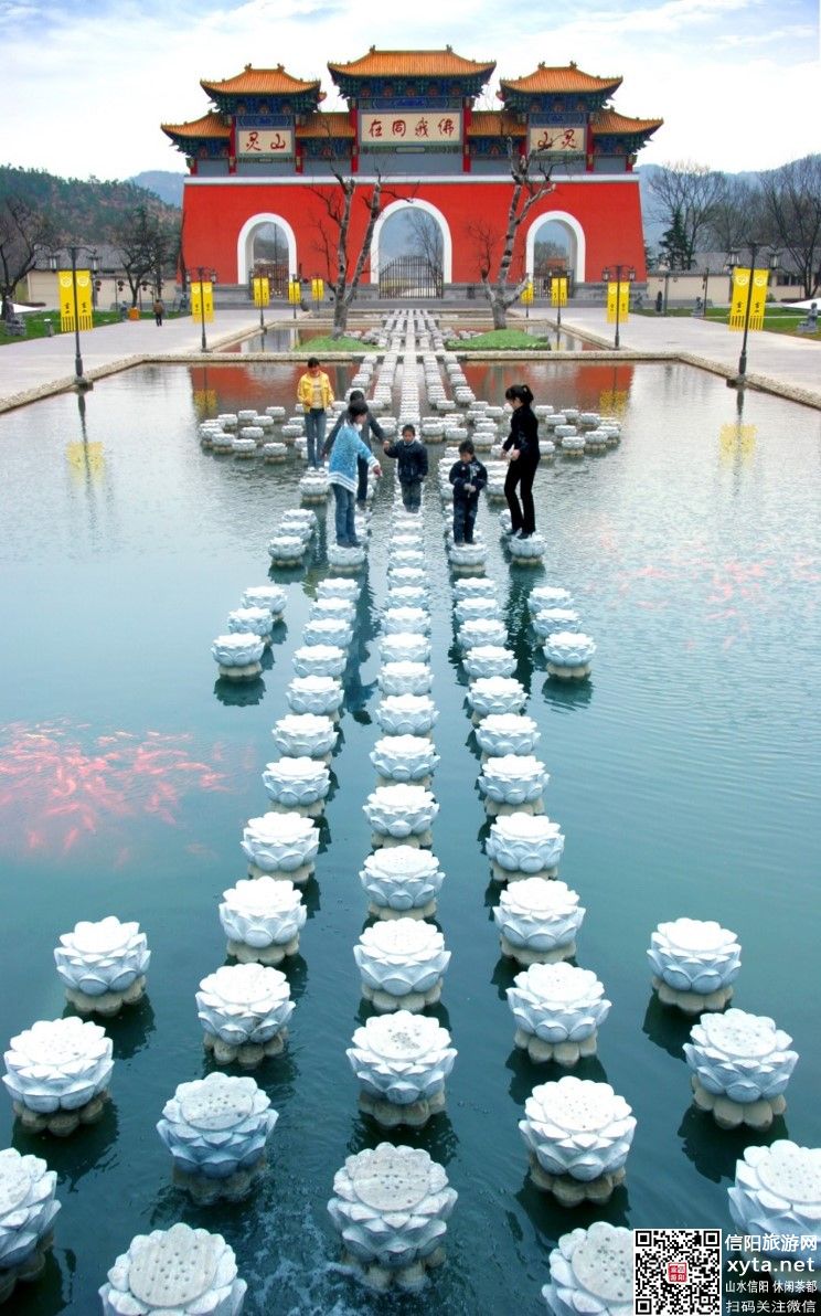 信阳灵山景区集“国家AAAA级旅游区、国家级生态示范区、国家级鸟类自然保护区”于一体。因史书记载灵山“有求必应,每云必雨,验之信然”,因而被传颂为神奇仙山、灵验之山。灵山寺始建于公元474年,为中原四大古寺之一。千百年来,“灵山三奇”——庙门东开、僧尼同寺、带发修行在佛教界独树一帜。建宁公主曾在此出家为尼。明太祖朱元璋三上灵山,敕(chi)封灵山为“皇山”、灵山寺为“国庙”。