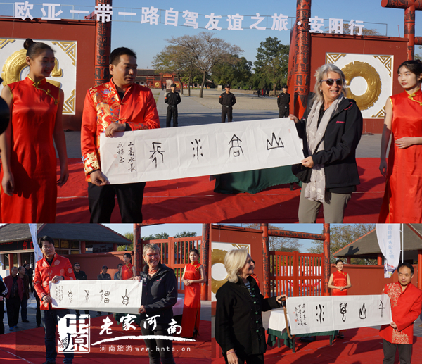 殷商礼器司母戊鼎、热情好客的市民……当日下午,为了让这批不远万里来到安阳的客人能第一时间感受到古都浓郁的文化特色,安阳市为其精心准备了一场文化色彩浓厚的欢迎仪式。在欢迎仪式上,不仅有书法家现场挥毫甲骨文书法,还有充满文化底蕴的旗袍表演,市旅游局工作人员现场将具有安阳特色的青铜礼器司母戊鼎赠送远道而来的客人,德国客人在了解了安阳青铜文明3300年后惊叹不已。精彩的演出、热情的市民让这批德国客人连连称赞。