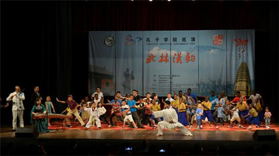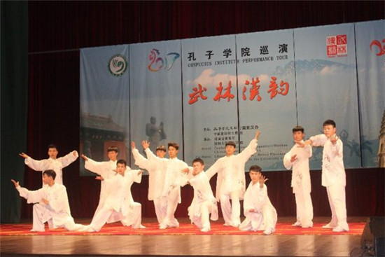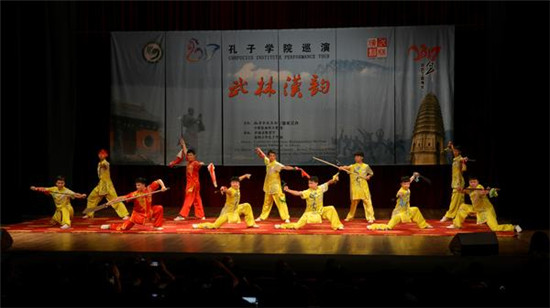 据悉,作为中国汉语国际推广一张具有鲜明特色的文化名片,在孔子学院总部/国家汉办的统筹下,“武林汉韵”已在亚洲、北美洲、欧洲、非洲等20多个国家的百余所大中小学举行了上百场演出,所到之处均引起轰动,为河南教育和文化对外交流起到了强有力的推动作用。
