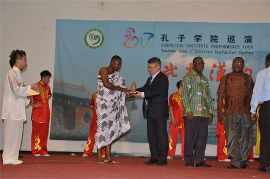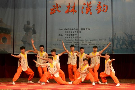2017年10月23日~11月2日,在遥远的非洲大陆刮起了一股中国文化旋风。由孔子学院总部、国家汉办主办,河南省教育厅承办的“武林汉韵”中国武术非洲巡演先后走进贝宁、加纳和南非,少林功夫、中国民乐所到之处惊艳了无数观众。据悉,此次“武林汉韵”赴非洲巡演,也是十九大胜利召开后,中国汉语国际推广第一批走出国门的孔子学院巡演项目。