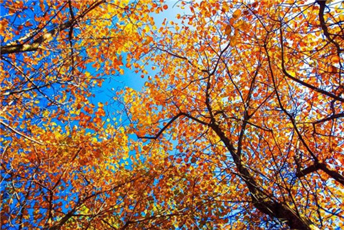 满树的金黄在蓝天的映衬下更显可爱迷人,唯美的画面让人眷恋。