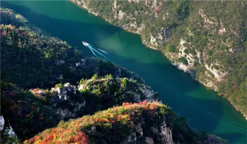 乘船游览,看着两岸或娇红或金黄的美景在碧波荡漾中慢慢闪过,微风丝丝入凉,心也随着静下了来,细品这秋的安详。