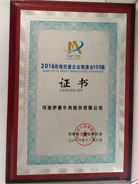 据河南伊赛牛肉股份有限公司副总经理徐勇介绍,此次伊赛集团喜获河南民营企业制造业、现代农业双100强企业,得益于近年来国家支持民营企业发展战略的实施,得益于公司近年来跨越式发展战略的落地和全体伊赛人的辛勤努力。