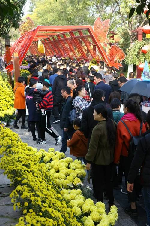 清明上河园缤纷菊花入画来 人潮涌动赏景忙