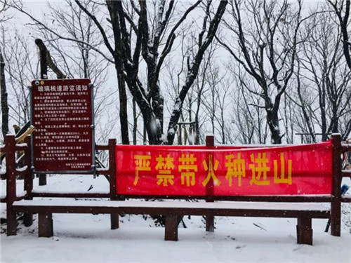 时刻都在提醒大家安全最重要,尽管下雪,醒目的字眼却一直都屹立在五朵山的各个角落,山头。