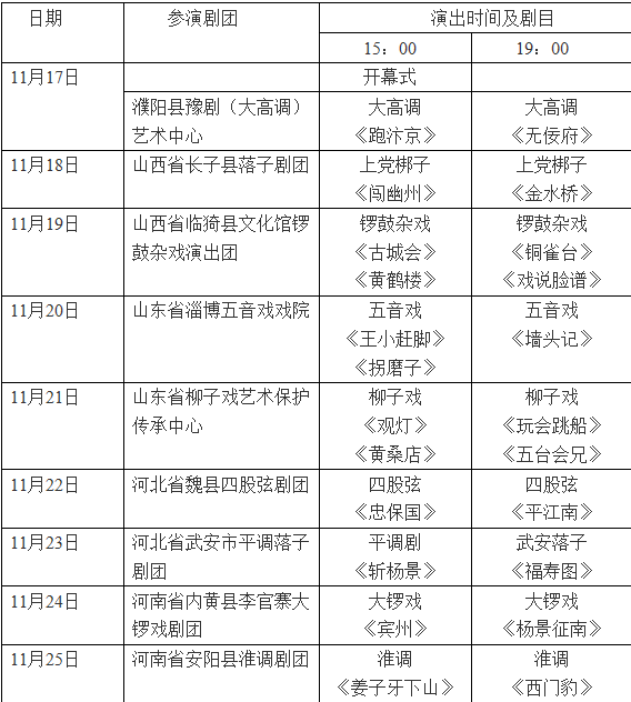 首届晋冀鲁豫传统戏剧展演活动日程安排