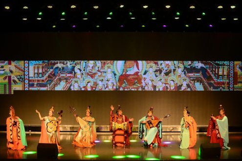 在这部剧作中,民族乐器多达近百种,每种乐器都代表了我国的传统民族和时代的特色,《玄奘西行》中《极乐》选段表演,复原了敦煌壁画中古乐器的合奏表演,有莲花阮、敦煌五弦琵琶、仿唐琵琶、排箫、笛子、埙、笙、细腰鼓等乐器,在表演中强烈的感受到敦煌的极乐魅力。
