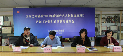 12月8日,由国家艺术基金资助、河南歌舞演艺集团原创的方言话剧《老街》新闻发布会在河南歌舞演艺集团举行。河南歌舞演艺集团董事长张振中、总经理甘源、党委副书记张玲露、董事范军出席发布会。