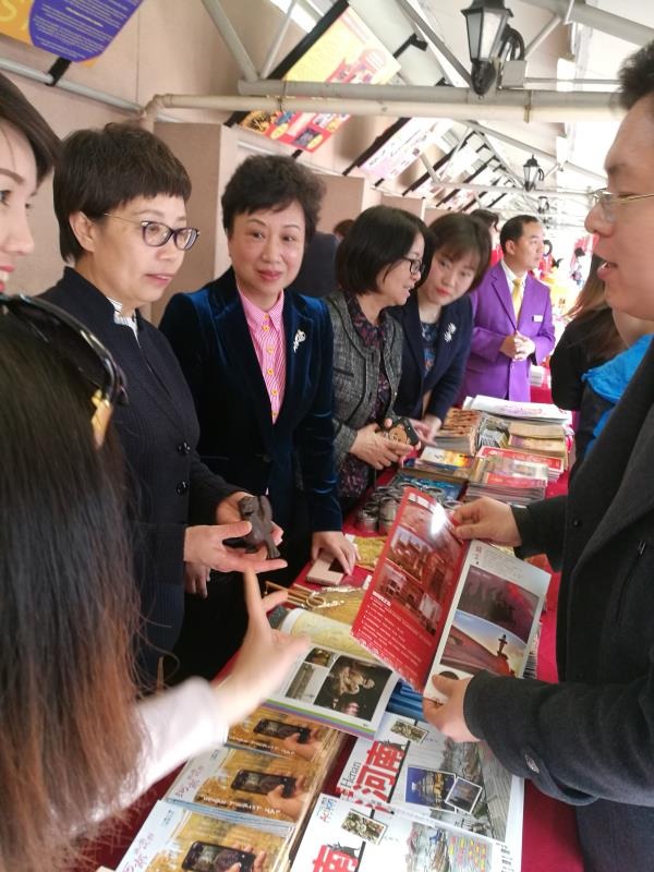 庙会活动现场,周耀霞带领全体河南旅游代表团给香港市民拜年,并发出了赴豫旅游的诚挚邀请。河南旅游代表团还开展了精彩的旅游推介,为香港游客推荐了特色鲜明的“功夫体验游、中原古都游、中原山水游、华夏研学游”四大旅游产品,发布了针对香港团队及游学团组的优惠政策。