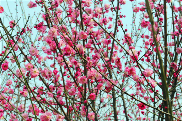 目前绿博园景区梅花开的正艳,虽然近段时间天气阴晴不定,但梅花不畏严寒,傲然绽放。赏梅的游客也络绎不绝。玫红、粉红、嫩白、淡绿的花瓣密密麻麻连成一片,串成一条条梅花道,随风而舞,梅香袭人,美不胜收。红梅、白梅、绿萼梅、珍珠梅交相辉映,梅香扑鼻。这些烂漫的梅花,为早春三月的绿博园增添了一道独特的新“梅”景。