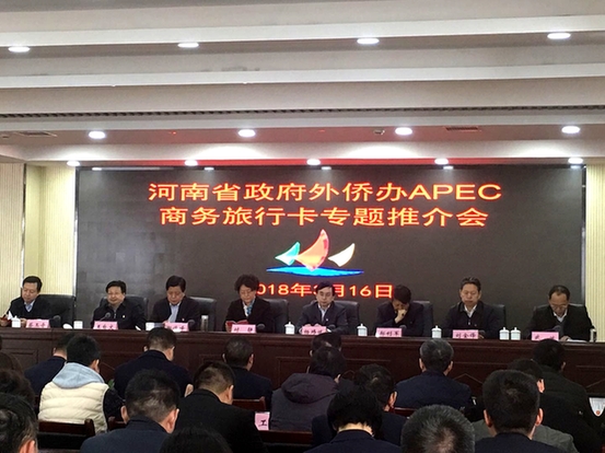 3月16日,河南省政府外侨办在郑州经济技术开发区组织召开APEC商务旅行卡服务“一带一路”建设专题推介会,郑州经济技术开发区国内500强企业、央企、行业龙头企业及港澳台知名企业高管60余名参加推介会。