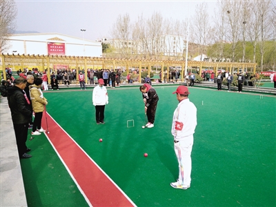 3月20日,第二十九届“黄河杯”全国门球赛在登封市郑大体院登封校区开幕,来自全国各地的84支代表队770余名运动员同台竞技,展开为期3天的角逐。由于本届大赛取消了年龄限制,参赛选手年龄最小的32岁,最大的84岁,使原本都是老年人参加的门球项目成为了全民共享的体育健身方式。