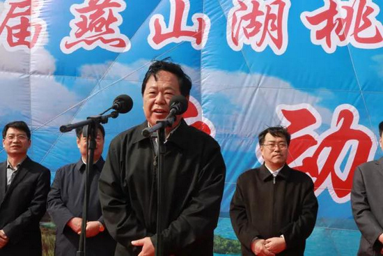 平顶山市旅游局局长张凤岭,县委常委、宣传部长刘泉,县人大常委会党组副书记殷国拴,副县长赵飞等出席仪式。张凤岭宣布叶县首届燕山湖桃花节暨2018赏花季启动,刘泉讲话,赵飞主持仪式。