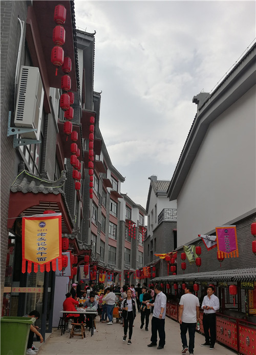 漫步在伏羲古镇美食街,就像穿越到了古代,红木青砖,古代样式的商家店旗,街道两边整齐有序,干净卫生的小吃摊位,宛如古朝却胜似古朝。