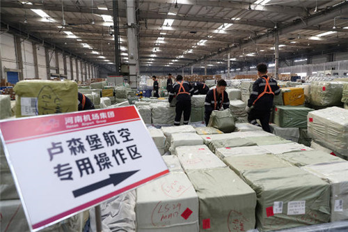 郑州航空港经济综合实验区口岸作业区和机场西货站,一件件邮包正在查验,一箱箱货物正在装机。机场负责人说,我们落实总书记关于支持建设郑州—卢森堡"空中丝绸之路"的重要指示,去年郑州机场客货运量首次实现中部地区"双第一"。