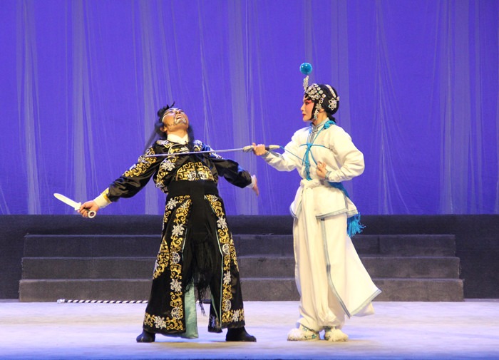 《三拂袖》由河南豫剧院青年团演员,中国豫剧百团争霸赛金奖、第九届“香玉杯”戏曲大赛金奖的获得者陈派再传弟子吴素真领衔主演。她凭借着明亮的嗓音、大方的扮相和精湛的演技将主人公蒋琴心从闺门旦,到刀马旦,再到武生、扇子生,最后又回归到闺门旦演绎得淋漓尽致,剧院里的掌声、笑声、感叹声此起彼伏,精彩的表演让观众如痴如醉。