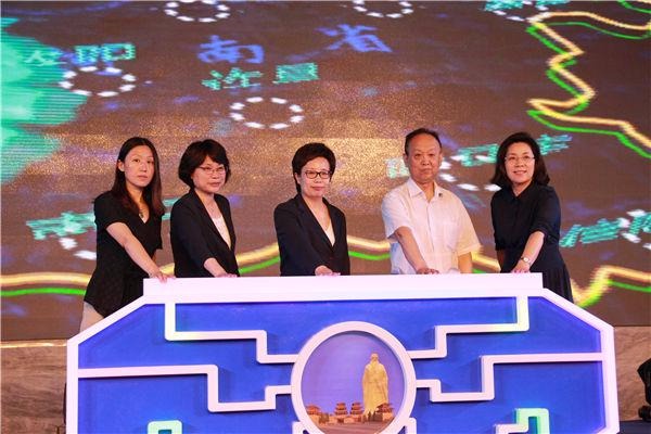 灵宝市委书记孙淑芳邀请省旅游局副局长周耀霞共同按亮了玩美灵宝启动球