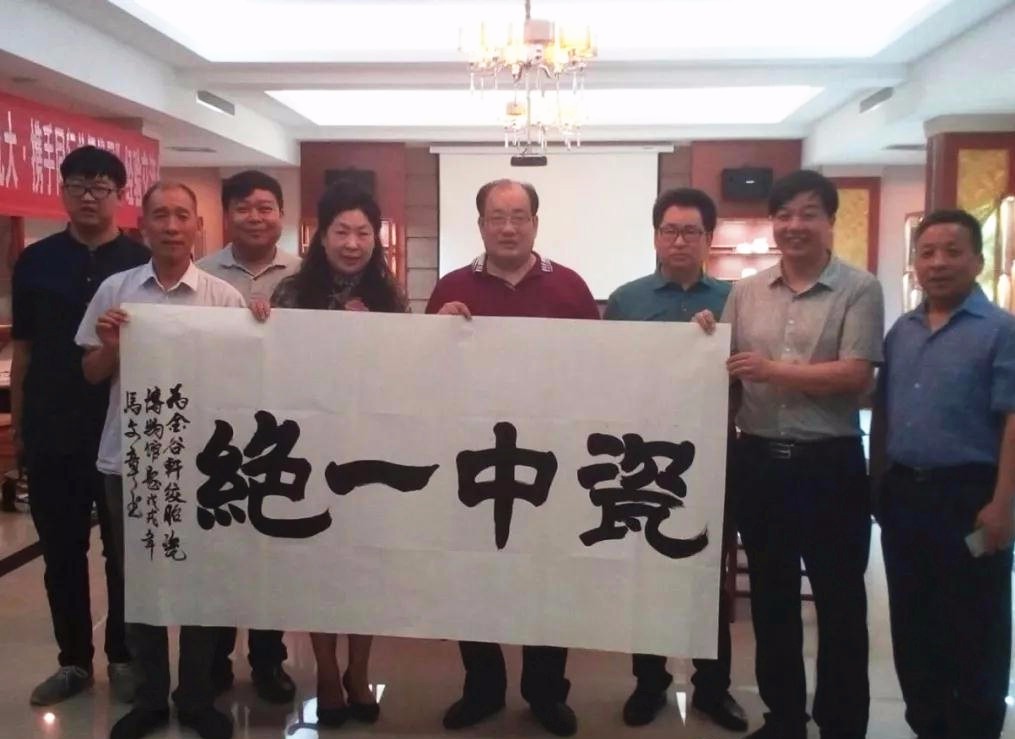 随后,马文章欣然榜书题字“瓷中一绝”,表达了对绞胎瓷文化的钟情。