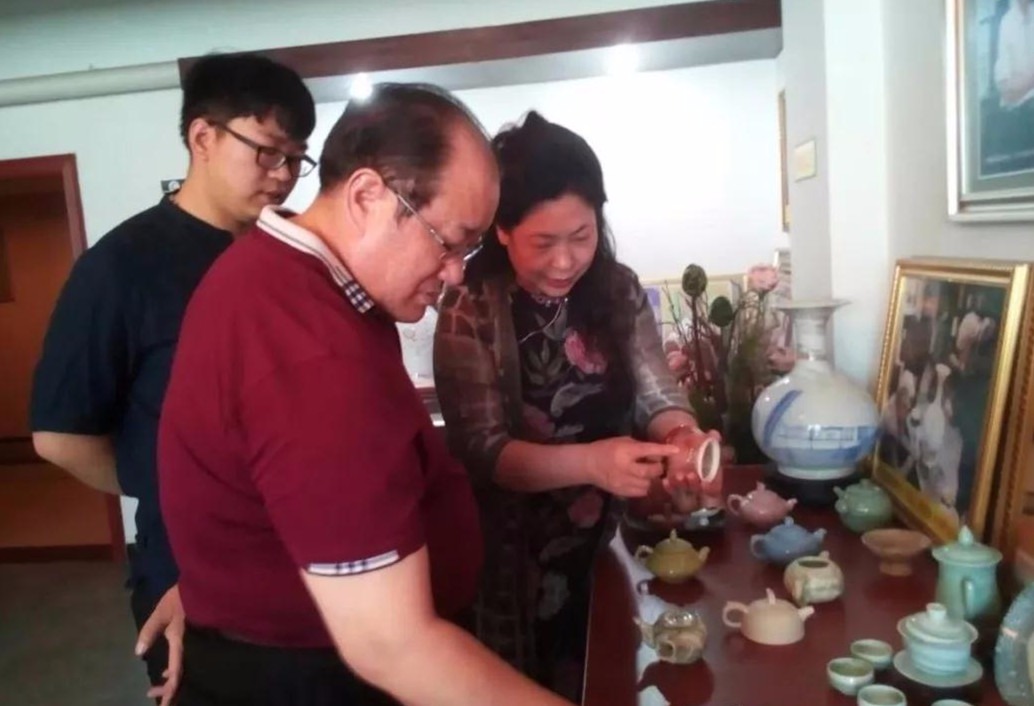 5月31日,河南省政协常委、河南省慈善总会副会长、河南省传统文化促进会会长马文章一行,应邀到焦作市金谷轩绞胎瓷博物馆进行考察参观。焦作市金谷轩绞胎瓷艺术有限公司艺术总监柴战柱、董事长李红霞进行了情况介绍和全程讲解。