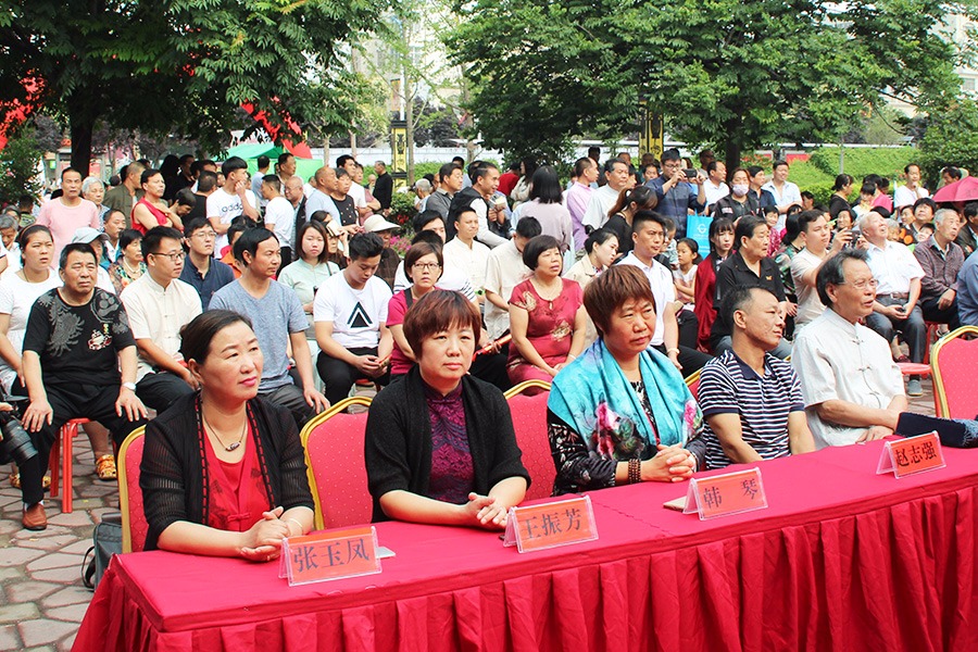 在现场近千余名群众的见证下,中国工美行业艺术大师、河南省非物质文化遗产汝瓷烧制技艺传承人、弘宝汝瓷艺术总监王振芳和李廷怀、韩琴、张玉凤、赵志强、杜书安、宋兆普等非遗传承人现场收徒。拜师仪式结束后,曲剧传承人杜书安及李氏唢呐等四代同台为观众演奏大起板,赢得了现场观众的阵阵掌声。