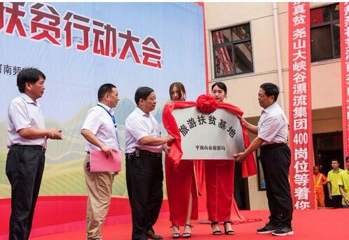 会上,与会领导为河南尧山大峡谷漂流集团成立揭牌,并为该集团颁授了“旅游扶贫基地”匾额。