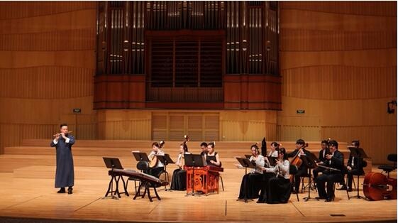 现场,王振用悠扬的笛声时而带人行在姑苏,看小桥流水;时而泛舟湘江,波光粼粼,春光明媚;时而纵马草原,牛羊成群,牧歌旷远。亦引人深感“宫女如花满春殿,只今惟有鹧鸪飞”的追求自由之情;“劝君更尽一杯酒,西出阳关无故人”的深挚惜别;“一去紫台连朔漠,独留青冢向黄昏”的家国之思……