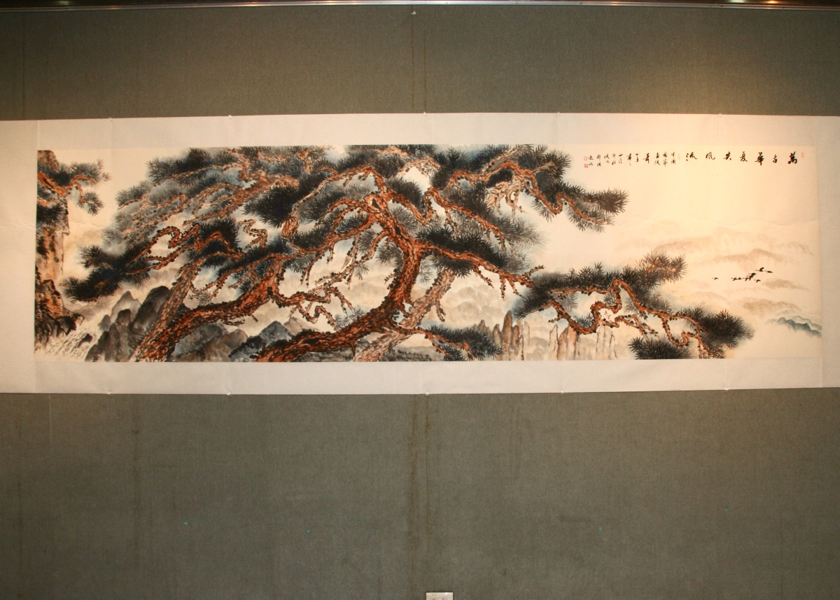 据萧四五人文书画作品巡回展总策展人罗坡雨先生介绍,此次台湾展是萧四五人文书画作品全球巡回展的第二站,首站己于2018年1月28日在香港饶宗颐文化馆成功举办并收到良好效果。台湾展在秉承”通过中国水墨,展示和传递中国人文精神的境界意识和气象意志“的巡展主旨外,为加强与台湾民众间在艺术、文化、思想和价值观的沟通与交流,加深情感,增进友谊,特别增加了《天圆地芳》、《鼎盛春秋》两个系列的作品,作为本次画展的巨幅主画:《万古华夏竞风流》,萧四五先生历时6个月创作完成,核心思想是“华夏民族大同”,图腾相同,精神相同,人文相同,血脉相同!在展览现场,该作品作为此次展览的一大亮点引得观展嘉宾竟相关注与热烈评议。