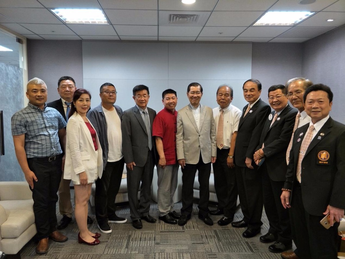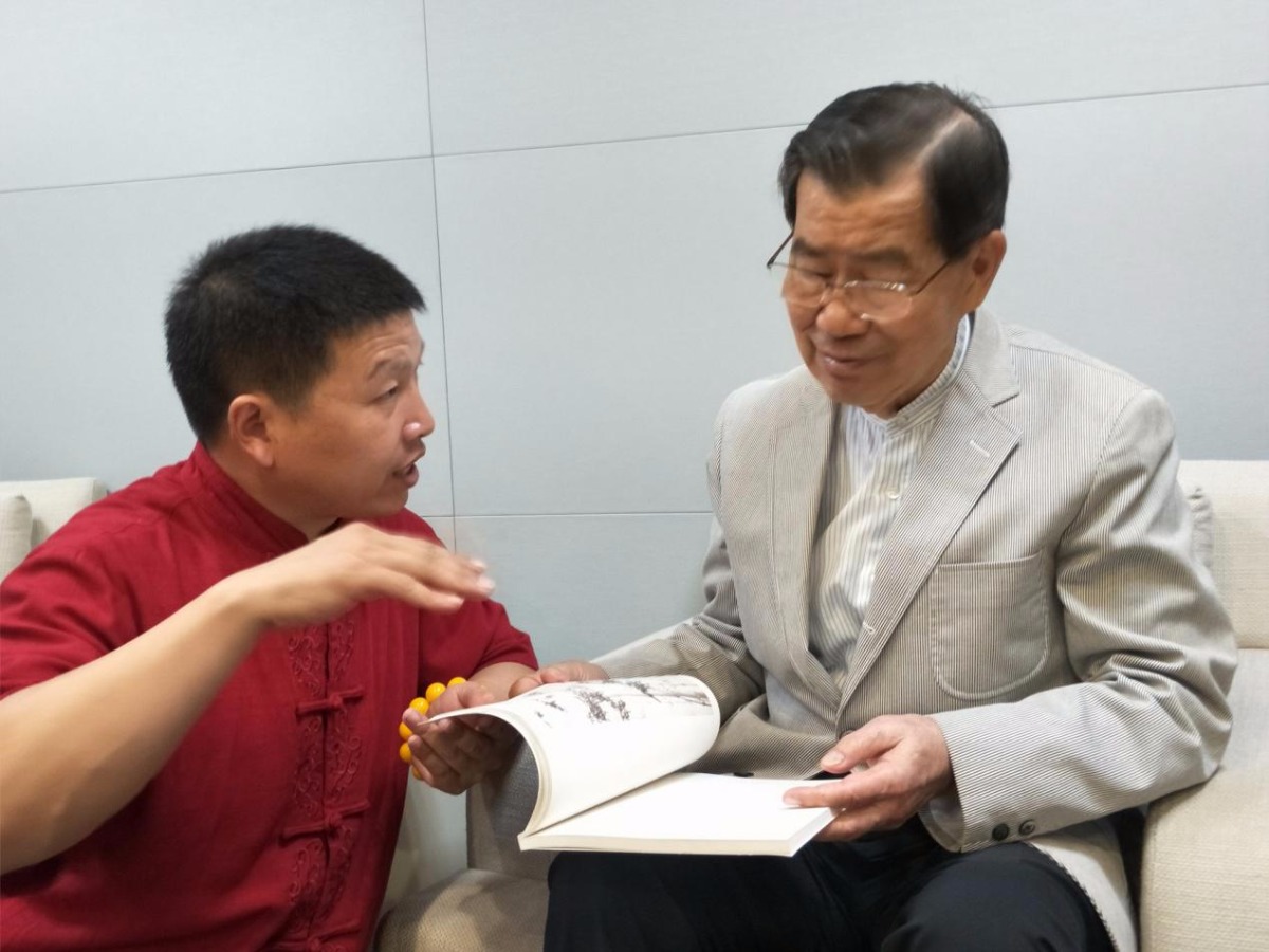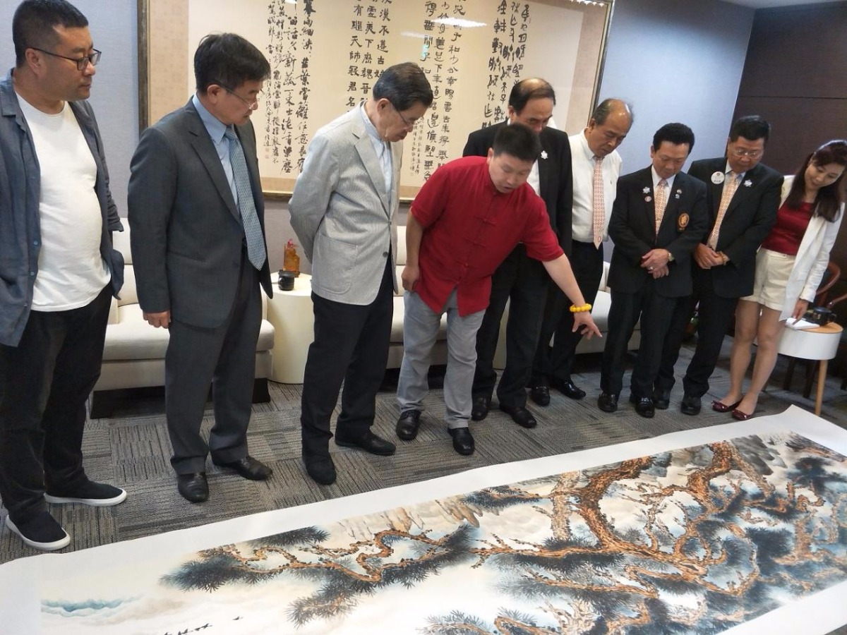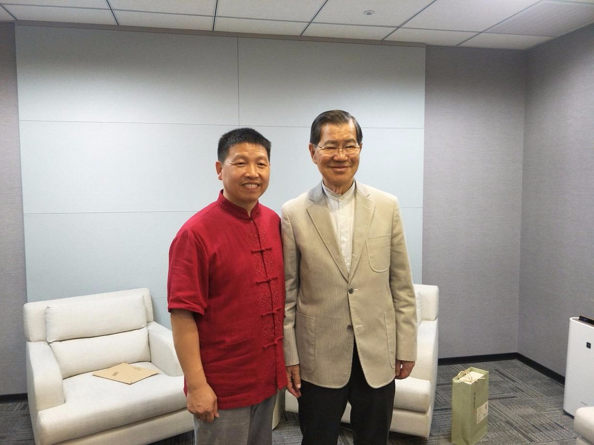 大公网讯(段晓燕)7月23日下午,应台湾萧氏宗亲总会和两岸共同市场基金会邀请,“境象——萧四五人文书画作品巡回展(台湾站)”一行拜会台湾两岸共同市场基金会荣誉董事长萧万长先生,同行人员有中国国家画院青年画家萧四五、台湾站联合策展人罗志明、全球巡回展策展人罗坡雨、展事联络官马利洋、展览统筹刘小欣。
