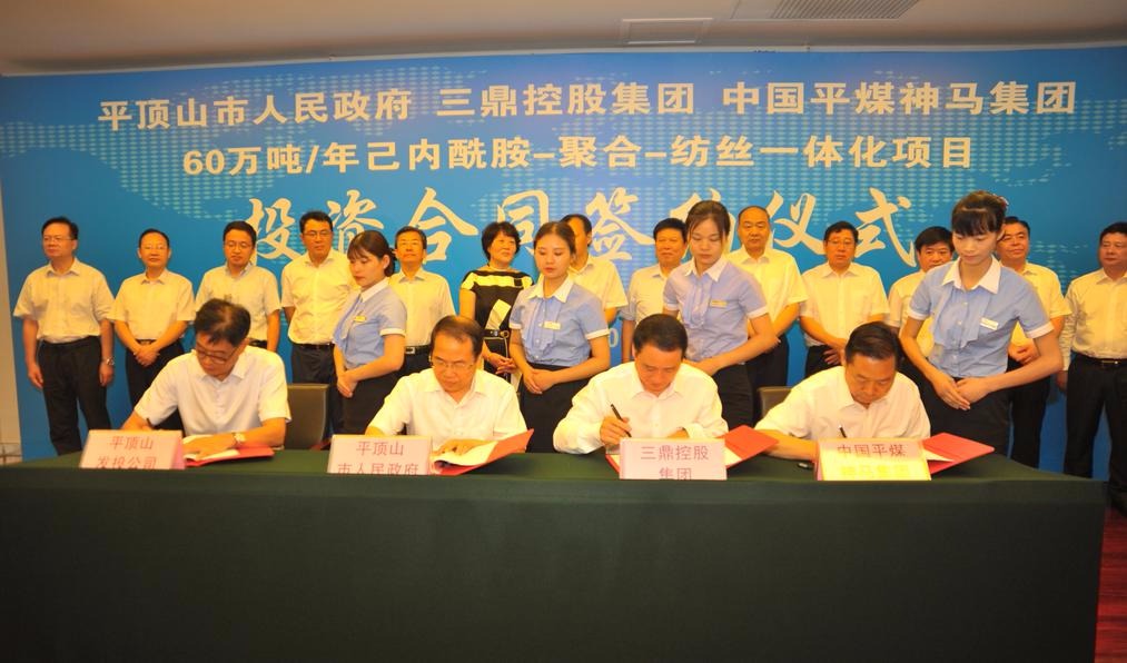 大公网讯(楚长城)7月28日,平顶山市人民政府、三鼎控股集团公司、中国平煤神马集团60万吨/年己内酰胺-聚合-纺丝一体化项目投资合同在河南郑州签约,项目预计总投资200亿元,总产值400亿元,安排就业万余人。该项目是迄今为止平顶山市引进的最大单体投资工业项目,将发挥各方优势,实现强强联合,全产业链打造尼龙产业界的航空母舰。