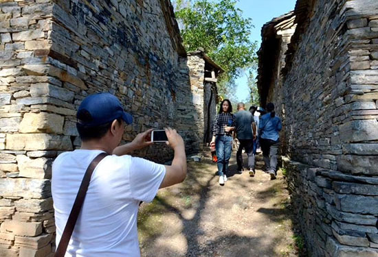 诗人作家访盛湾镇土地岭石头村(楚长城摄)