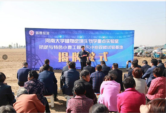 10月10日,河南大学植物逆境生物学重点实验室抗逆与特色小麦工程研究中心双楼试验基地,在开封市祥符区揭牌,将实现农户增产增收,助力脱贫攻坚,为当地经济和社会发展注入新活力。