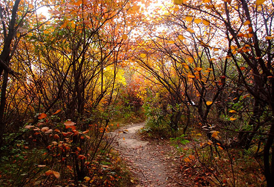 嵩山红叶林带色彩鲜艳(楚长城 摄)