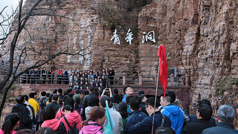 2018年11月3日,初冬的太行山,寒意已袭人,全国红色教育基地河南省林州市红旗渠热度不减,来自全国各地的游客来到这里,观赏秀美太行,回忆当年艰苦岁月,感悟红旗渠精神。新华网发(马庆祥 摄)