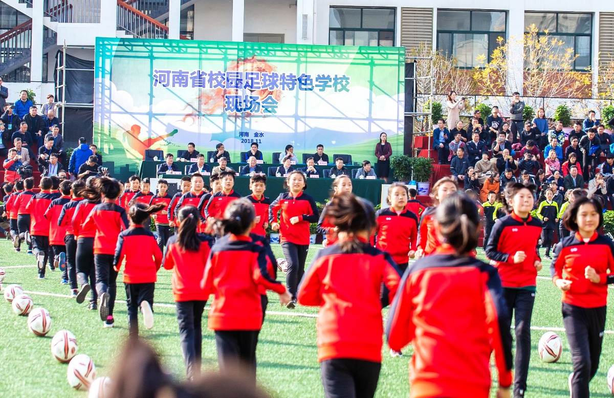 11月10日上午,河南省校园足球特色学校现场会举行经验交流活动。金水区教体局、新安县教体局、郑州二中和济源市太行路小学依次做经验交流分享;河南省校足办与三家企业签订战略合作协议。