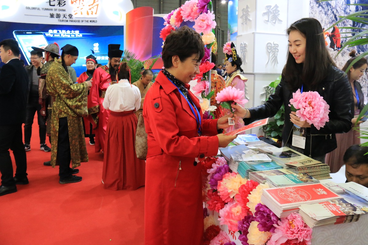 11月16日-18日,2018中国(上海)国际旅游交易会在上海新国际博览中心举办,洛阳市旅游发展委员会携该市部分县(市、区)旅游局、景区、旅行社、星级饭店等旅游行业单位参展。洛阳展位牡丹鲜花、《武则天》特型演员仪仗表演、扫码赠绢花牡丹等活动吸引众多观众和旅行商围观、参与。