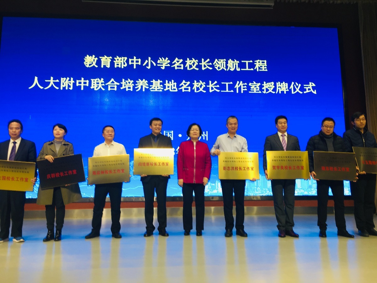 当日,人大附中联合总校是名校长领航工程培养基地之一。基地负责人中央文史馆馆员、人大附中联合总校校长刘彭芝为人大附中联合总校培养基地成员授牌。