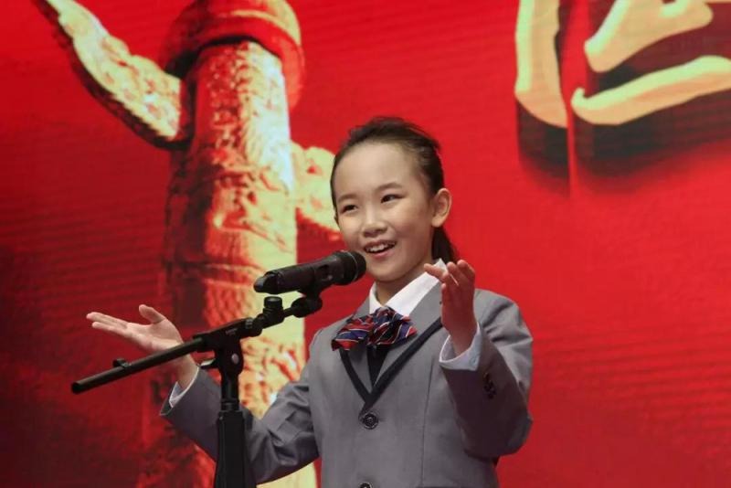 河南开封县街小学生庞轶心正进行宪法知识演讲\大公报摄
