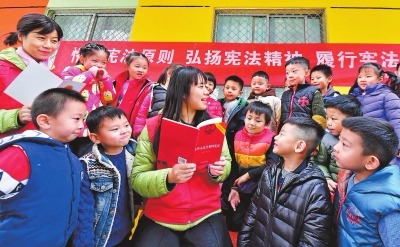 :洛阳市涧西区重庆路启蒙幼儿园,普法志愿者为孩子们讲解宪法知识(源自新华网)