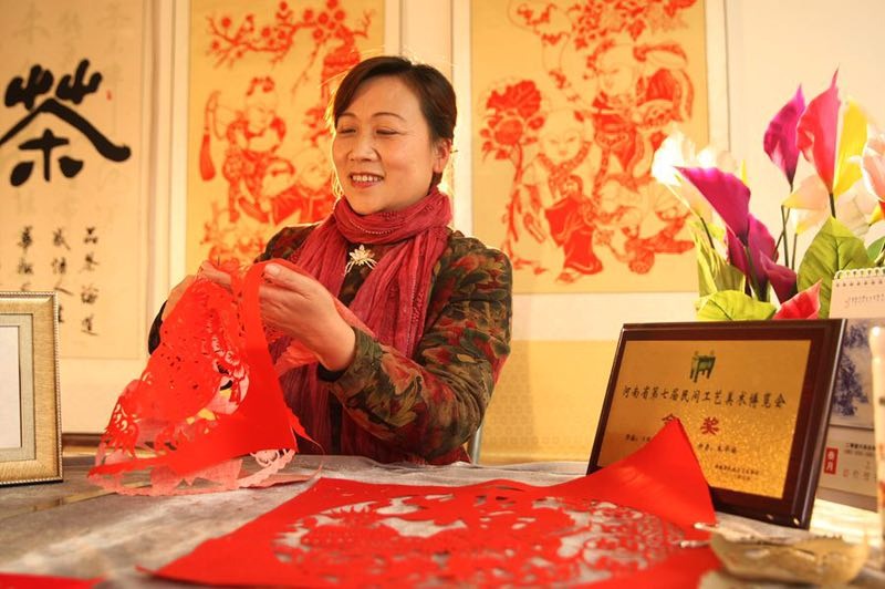 著名文艺评论家柯文辉曾以“质朴清新,不拘一格,贴近民歌,泥香沁纸”盛赞朱华梅的剪纸艺术作品。(廖煜 彭涛 鲍云)