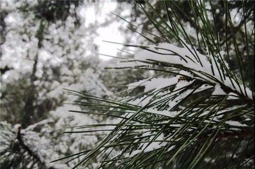 冬天飘飞的雪花,如片片梨花,纷纷扬扬,轻轻落满山林。松林静静地张开双臂,接纳雪花。