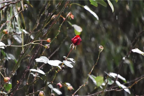 松叶羞涩地和雪花轻吻着,任雪花染白全身。小草匍匐着和雪花轻轻絮语,感谢雪被带来的温暖。