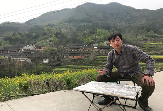 河南美协副主席、中国山水画名家桂行创在外地写生